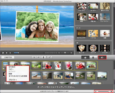 写真編集を終わったら、スライドショー作成を開始します。3Dテンプレートを用意しておりますので、すばらしいスライドショーを簡単に作成できます。