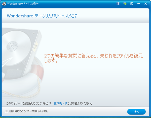 ここにはウィザードモードでゴミ箱復旧 手順を説明します。