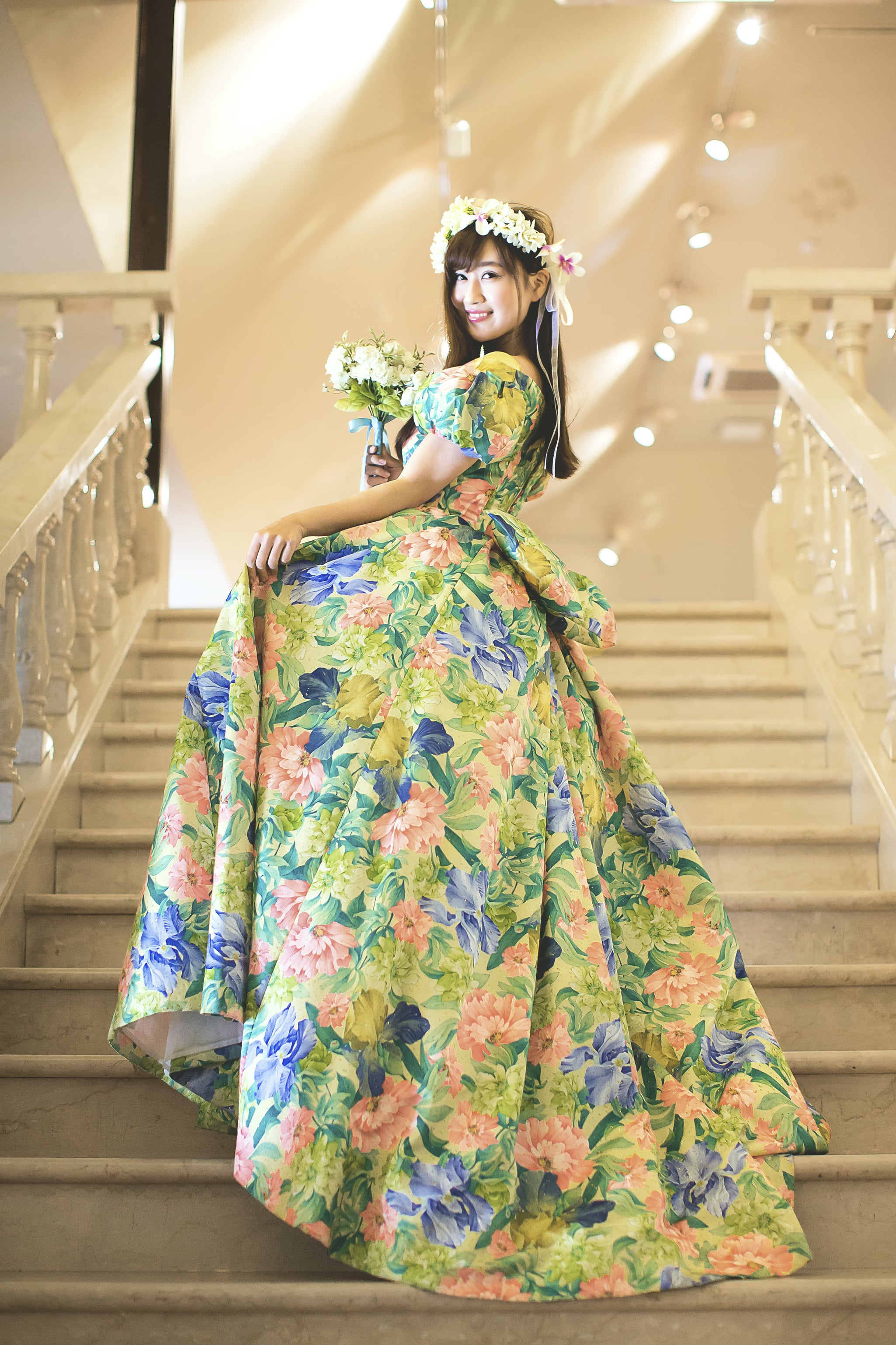 グリーンに溶け込んだ花柄のドレスがとても素敵でした~