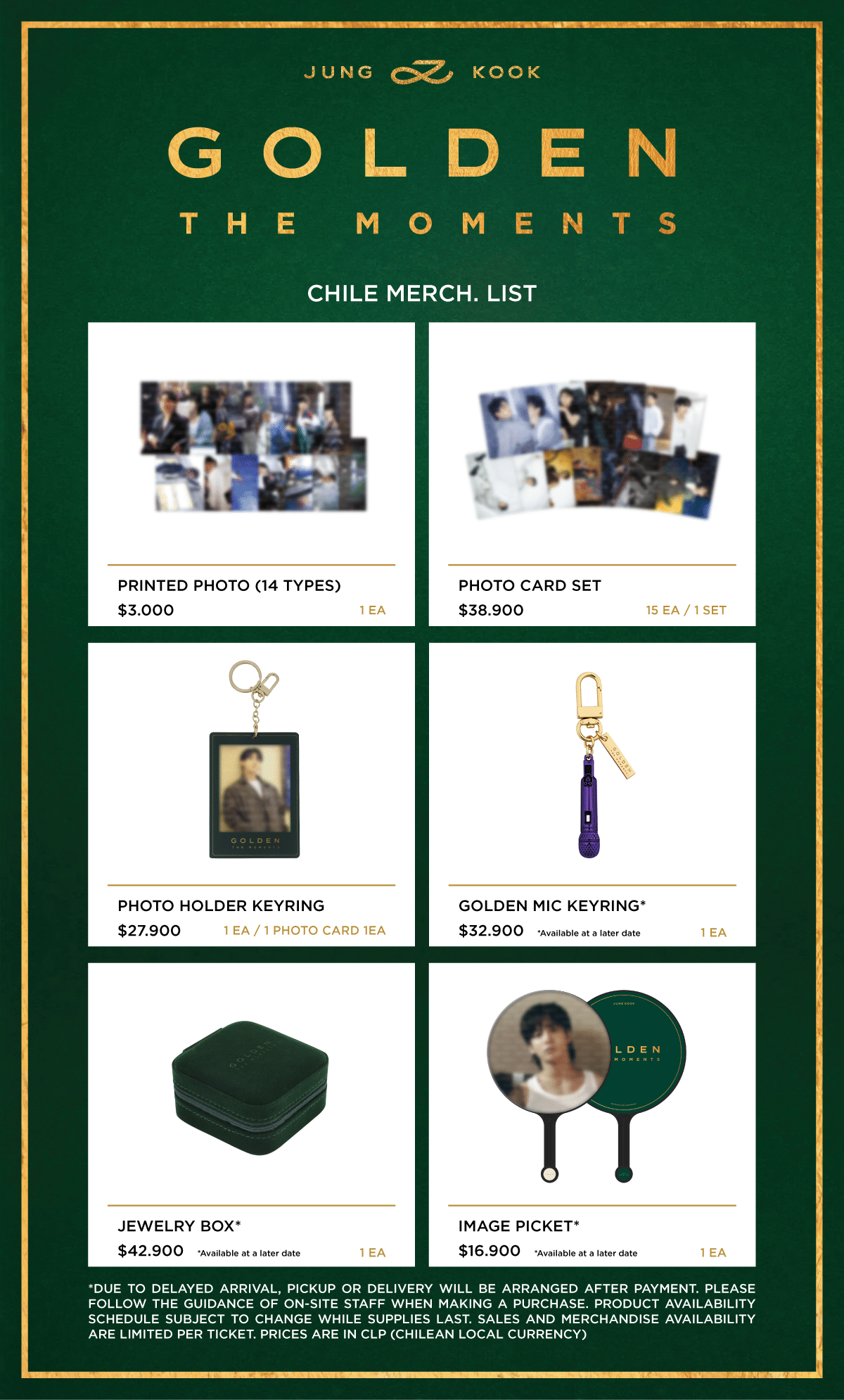 Jung Kook Exhibition "GOLDEN: The Moments" in CHILE Merch. List