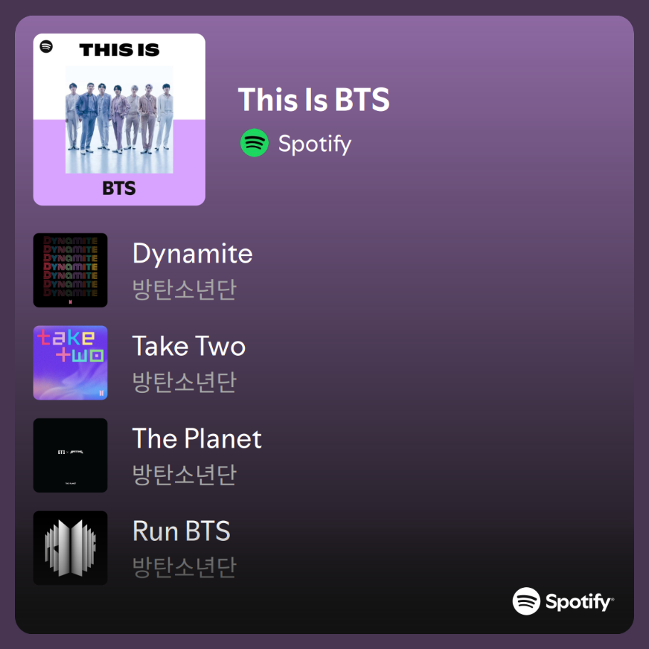 Spotify 'This Is BTS' Playlist 접속해서 방탄소년단이 남긴 음성메세지를 확인해보세요.https://t.co/KXF5zFIEcZ