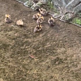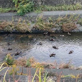 山崎川にカルガモのヒナが誕生