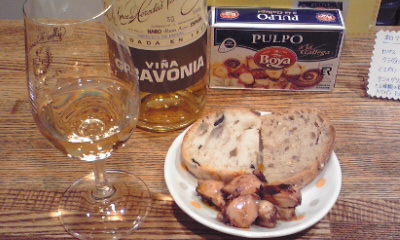 さて、合わせた食材はタコのガリシア風です。(画面下のもの)上はAGUJAS・アグハ(ダツ科の魚)の向日葵油漬けです。こちらも試してみたのですが、マリアージュ的にはタコに決定しました。
