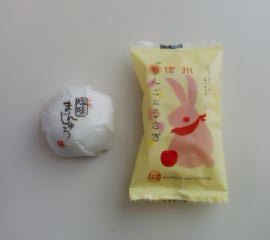 会社で先週、信州に出張に行った人からお菓子のおみやげを貰った。これがかわいい!うさぎの絵が書いてあってお菓子の名前が「りんごなうさぎ」
