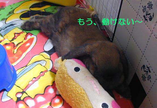 今朝も一気に3分の1ほど食べて、トイレに座ったあと、その場で寝転んでいました(笑)。よっぽどお腹一杯だったのかなぁ?