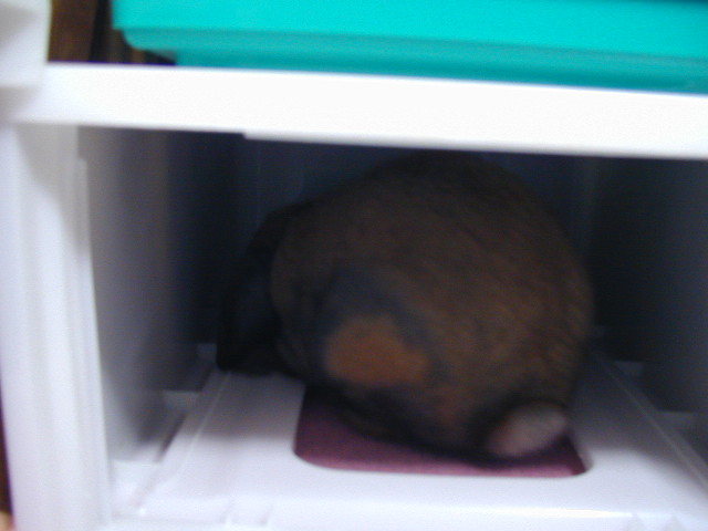【フライデー風】まる激写!掃除中、どこからともなく気配を察知してやってくる、まる。本当に掃除(してるとこ)が好きなんだよね~。今日はまるのケージの台になっているプラスチックケースの引き出しをはずして掃除していたら、颯爽と登場し少し様子を伺って、ケースの中に入っていきました。多分、こうなると思っていたけど…(^^ヾこうゆう狭いところ本当に大好きだもんね~。「はっ?!いくらボクがかわいいからって、写真週刊誌じゃないんだから急に写真撮らないでよねっ!」