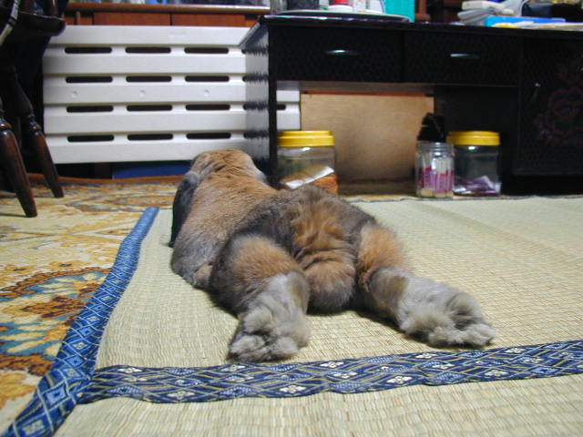 」と足を伸ばしてリラックスポーズ。せまいケージの中では足を伸ばすことが出来ないから外に居るときはこのポーズがいいのかなぁ?