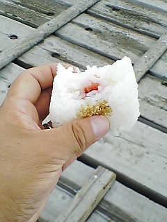頂上で食べるおにぎりは格別です!うまいっす!