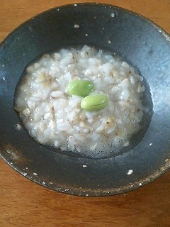 そばが出てくる前にそばがゆ、食べた後に自家製漬物付でした。