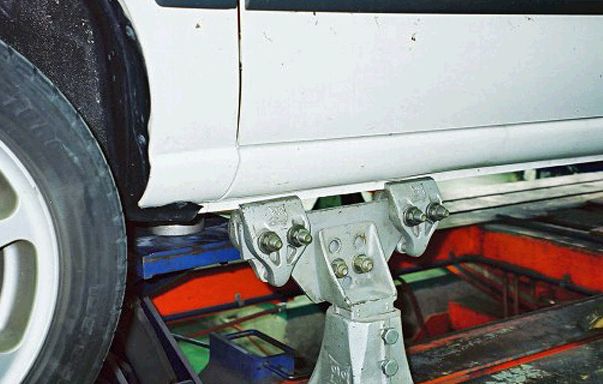 ボディの下側の左右端にあるジャッキをかけるところです。