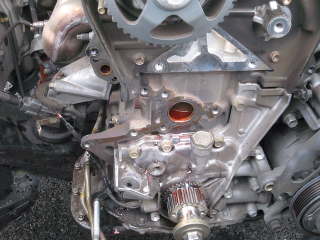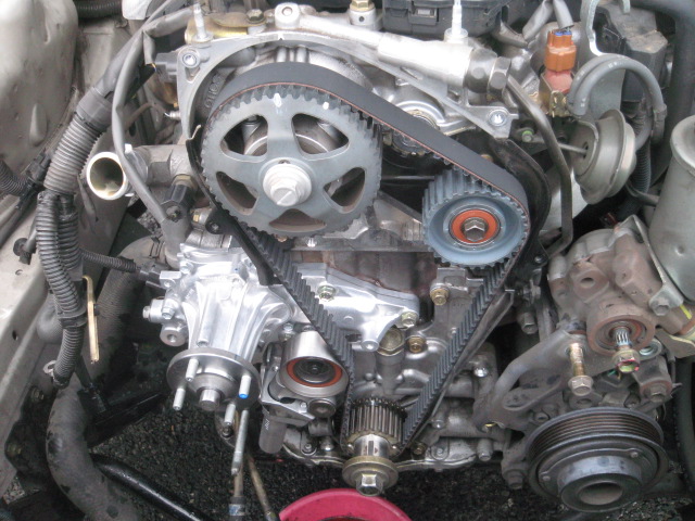 タイミングベルト、アイドルプーリー、テンショナー、ウォーターポンプと取り外しました。