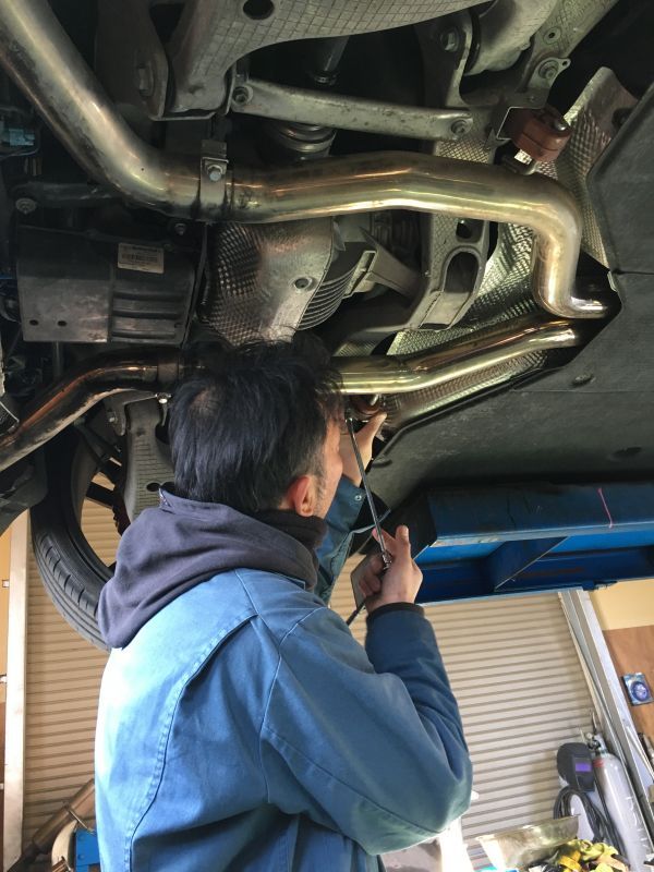 症状はマフラーからキコキコ嫌な異音がするとの事。