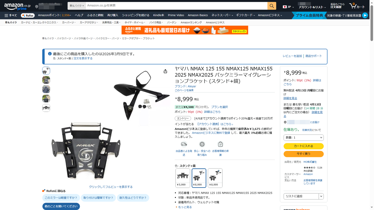 NMAXの近過ぎるミラーを改善する念願のカウルマウントのミラーキットが来ました~😍