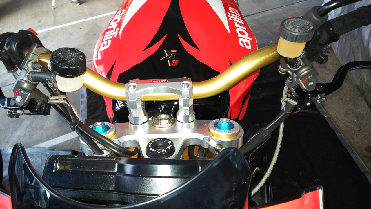 トゥオーノにレーシング・マスターが着きました。リザーバータンクのステーを着けるところが無く宙ぶらりんです (^o^ゞ