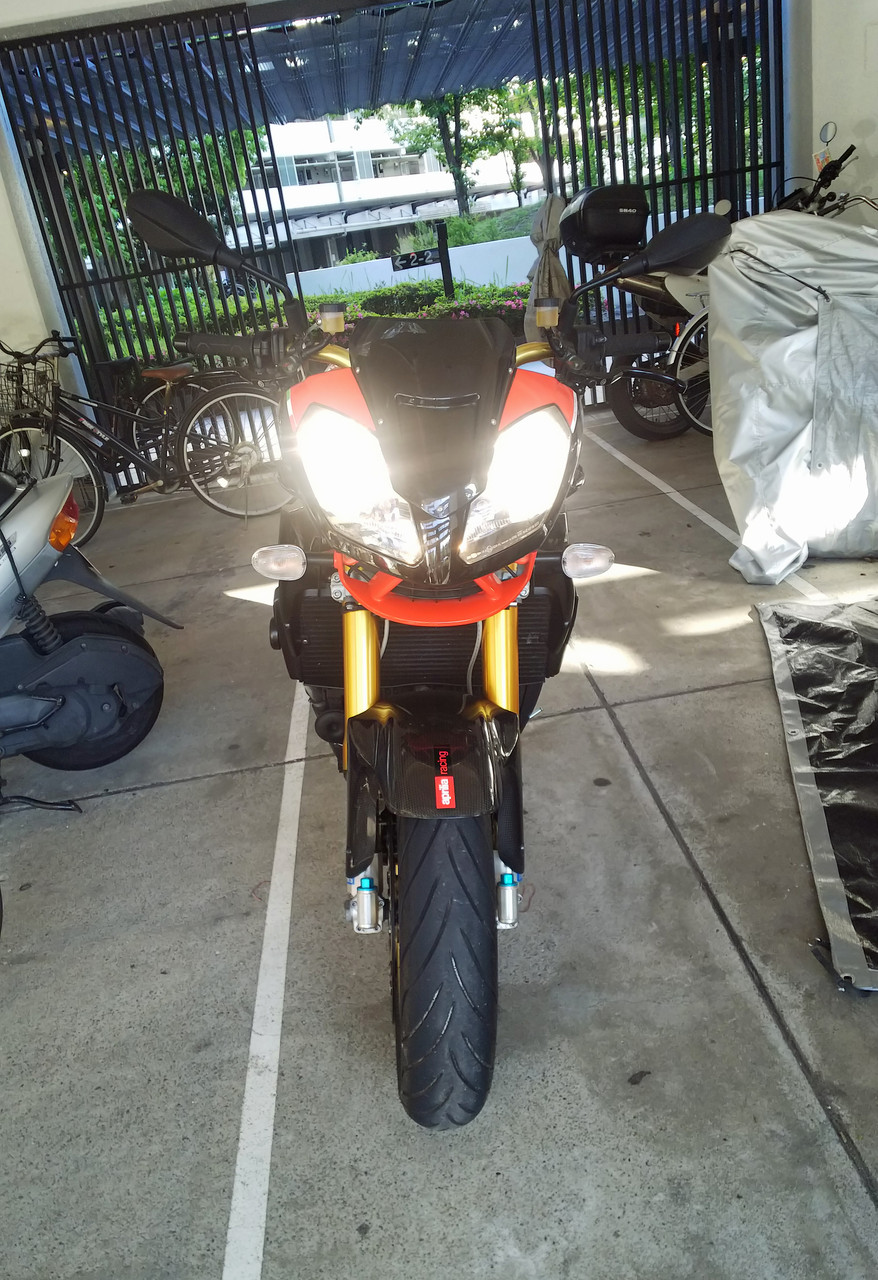 トゥオーノはネイキッドなのでライトのバルブ交換は超簡単です♪ バルブを30°捻って引き抜くだけ (^^)