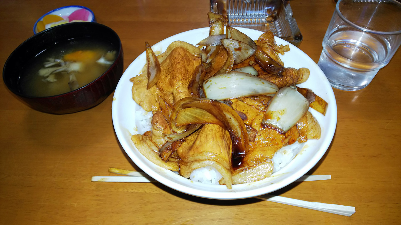 お勧めの肉丼上を注文です。豚を魚の煮付けの要領で煮た丼でした。チョイ甘かったかな (;^_^A