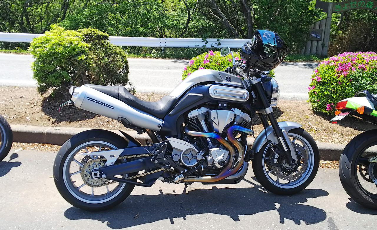 今日の参加中で最大排気量1700ccのMのヤマハ MT-01。車重は300kgはあるな (^o^;)