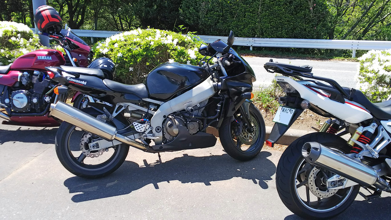 Kさんのカワサキ ZX-9R。前回このコースでリタイヤしたので今回はリベンジです (;^_^A