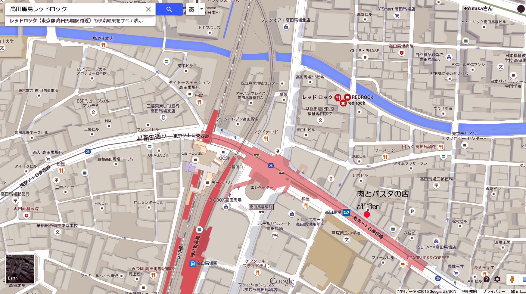 馬場のレッドロック付近に到着。何か凄い行列が! これに並ぶと1時間半は待たされるだろう!(;´Д`) 急遽計画を変更して付近にも似たようなローストビーフ丼を出す店があるらしいので、所謂“2匹目のドジョウ” 第2候補のイタリアン「at Den」に移動です。