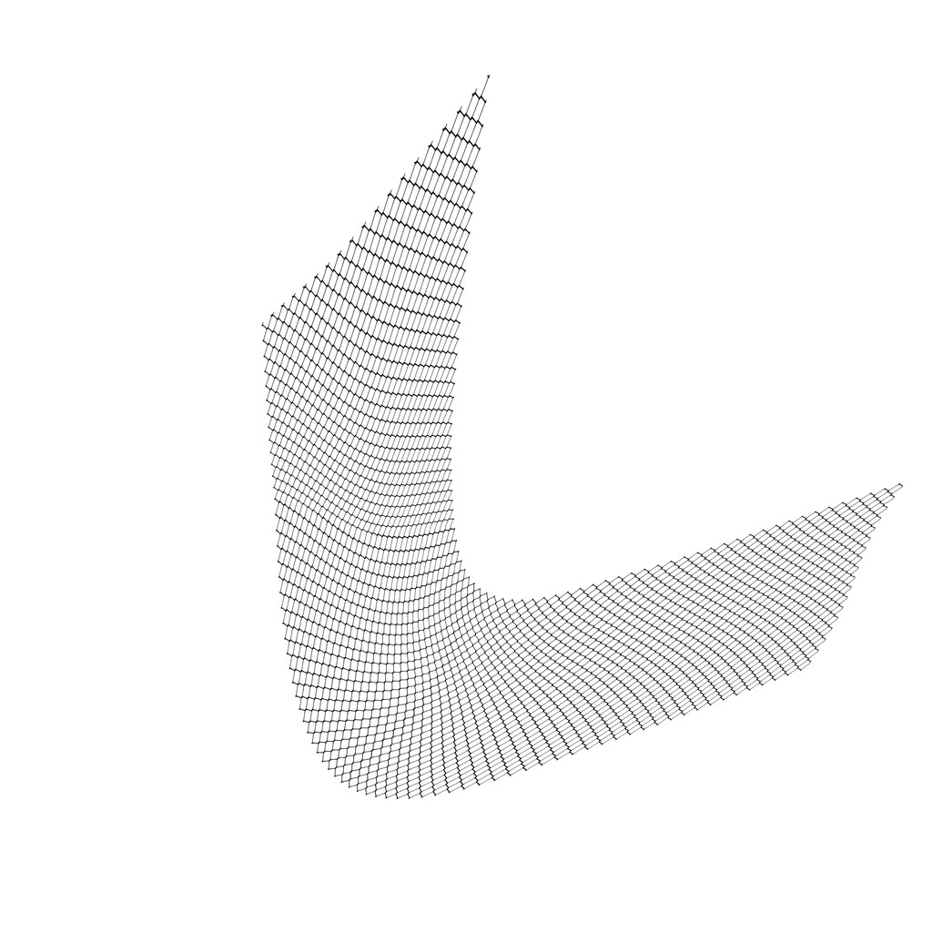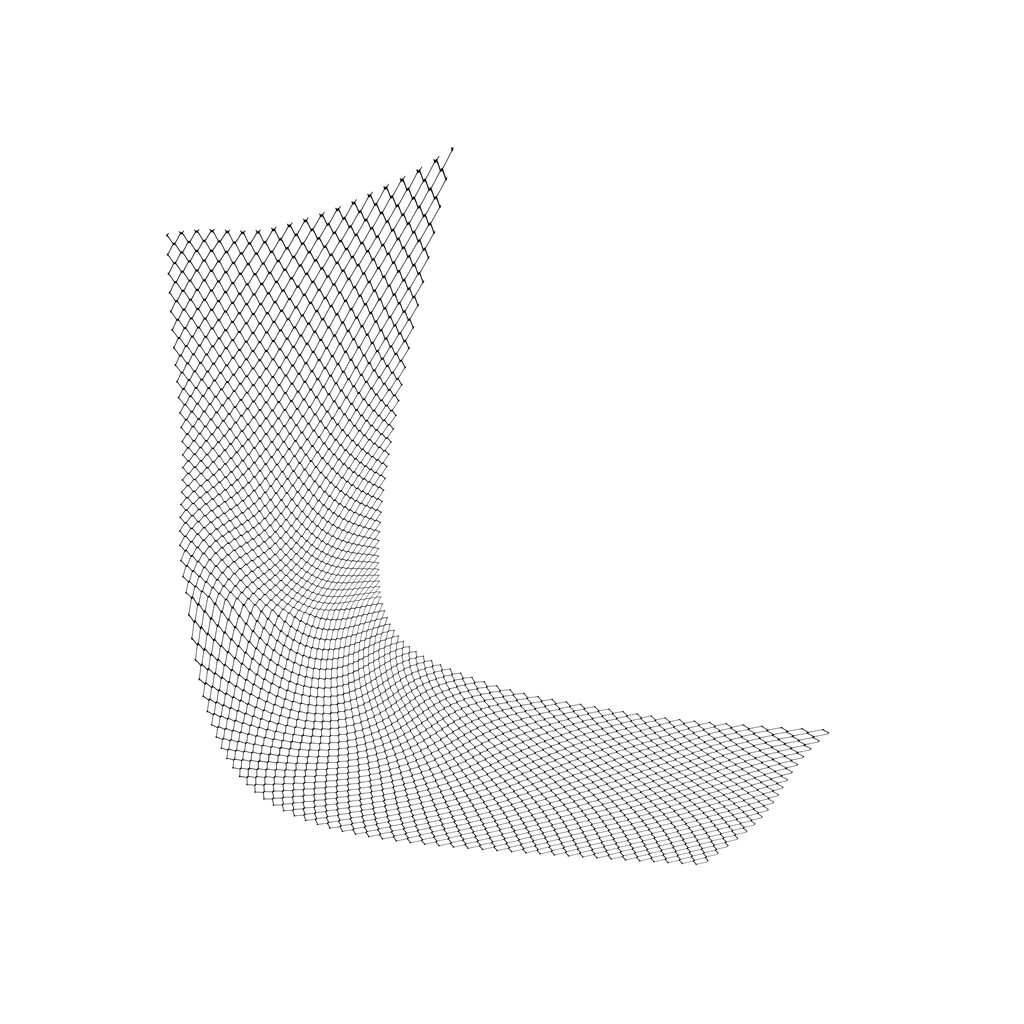Photoshopのもう一つの変形ツールで棒状の網々を80度まで曲げてみたらこんな感じ。