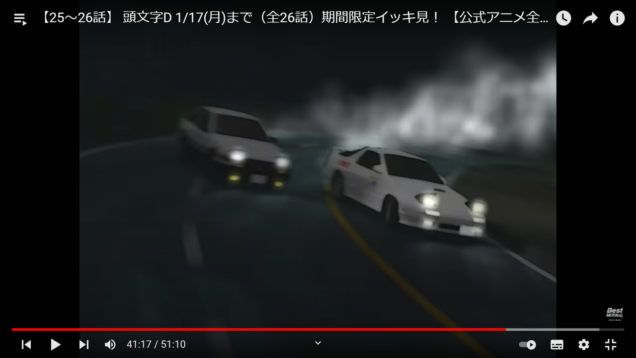 アニメ「イニシャル D」 1/17日までは全話無料で観れます♪(^^)/