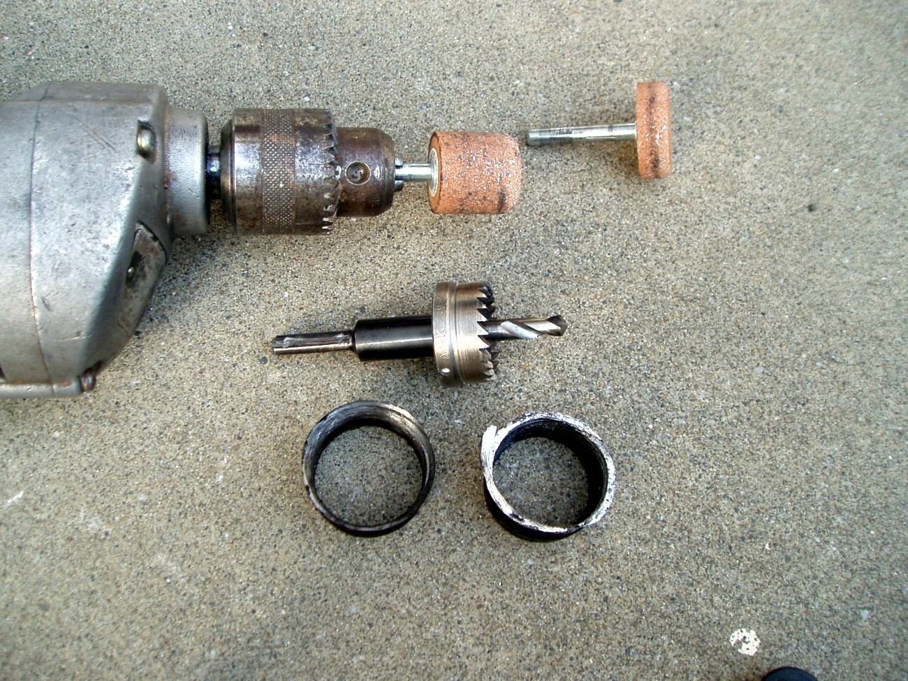 30mmホルソー、ステンレス製、鉄・アルミを削る。一本目は直ぐに取れました♪。