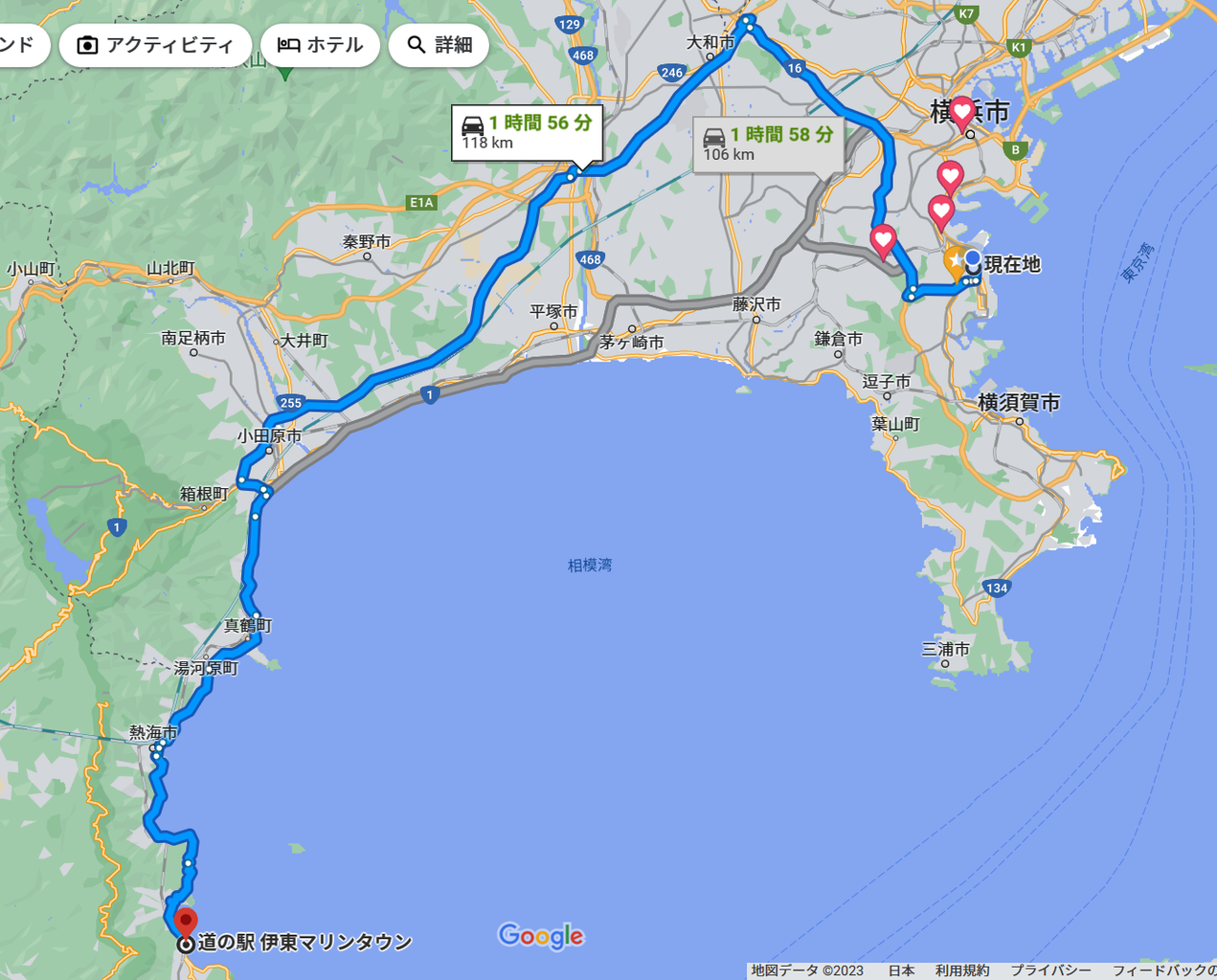 目的地は道の駅「伊東マリンタウン」です。