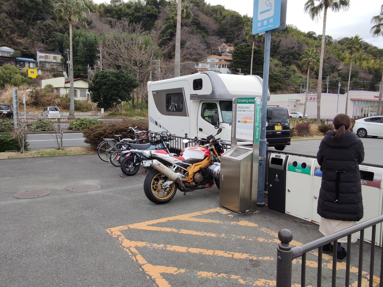 駐輪所のトゥオーノ君。 ん?キャンピングカーか。