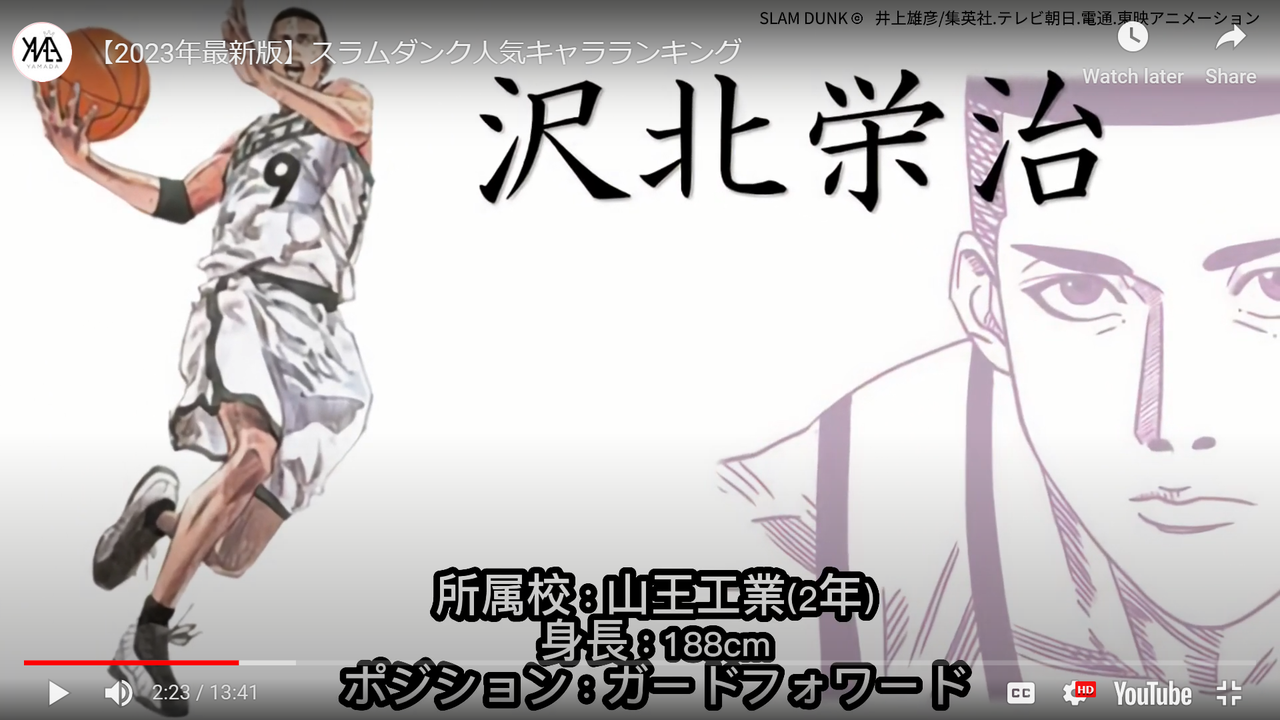 身体能力やオフェンス力、ディフェンス力はいずれも流川・仙道をも上回る超一流だが、花道曰く「負けたことがないため、沢北の頭の中にはパスという選択肢はない」。