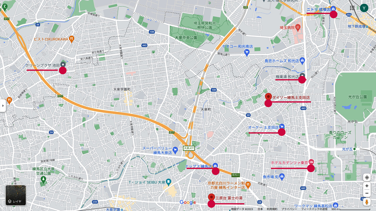 練馬の良く行く店の地図です。この圏内なら充分チャリで行ける距離ですね~(^^)