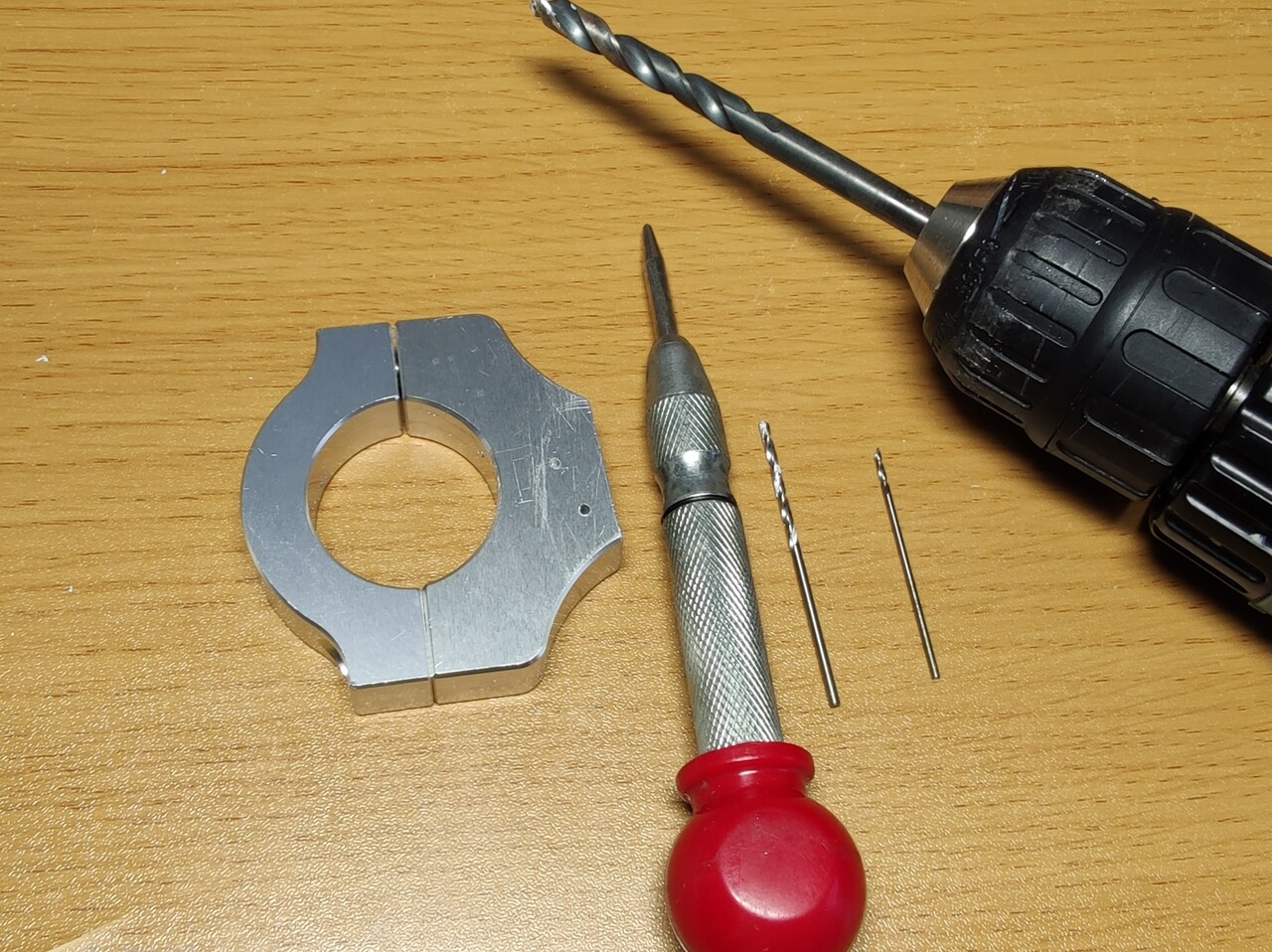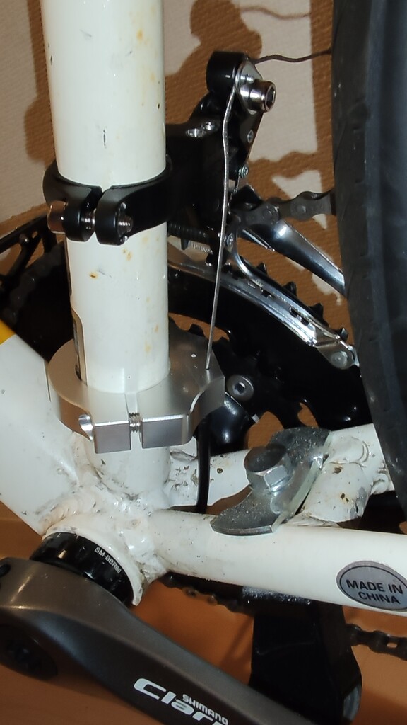 シートポスト径が32mmなのでバイクのステダン用クランプを買って、ワイヤー押さえを作ります。