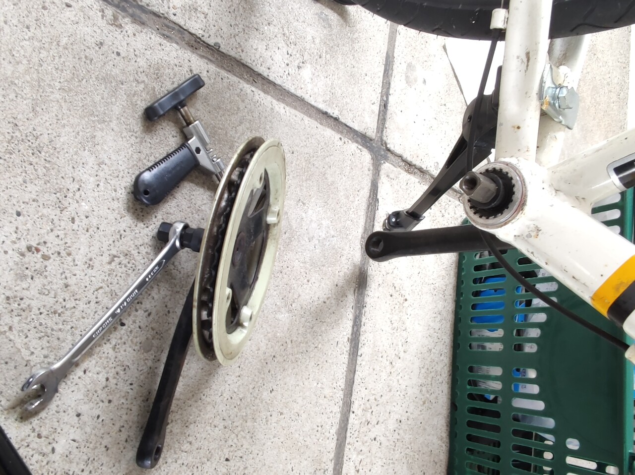 次はクランク、チェーンリングを良いのに交換します。