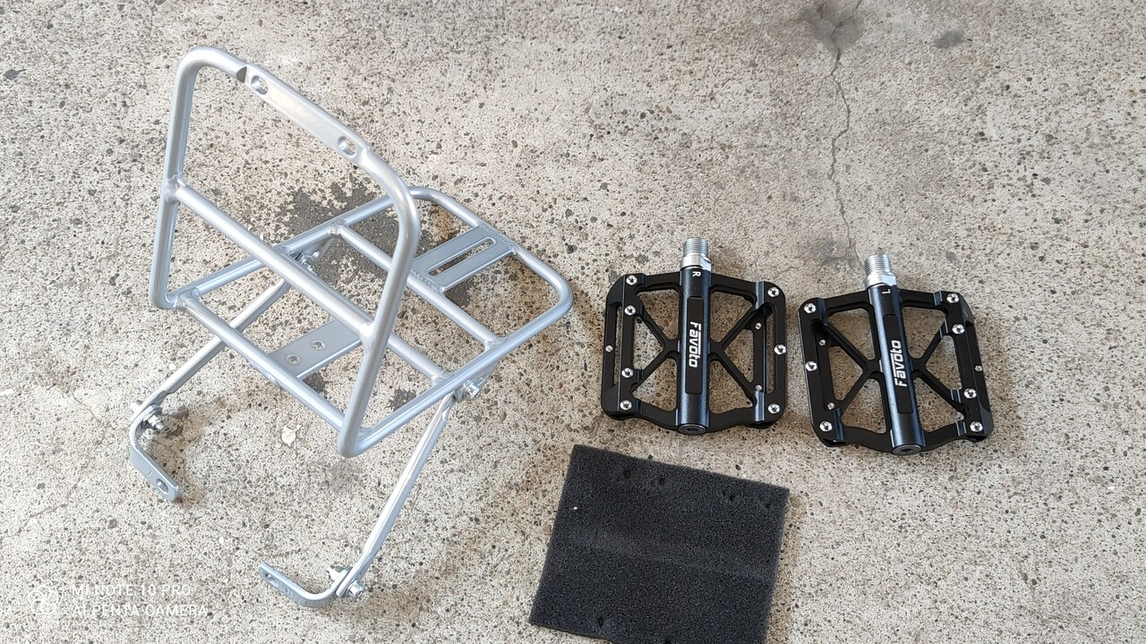 ペダルとカゴをお洒落なのに交換します。