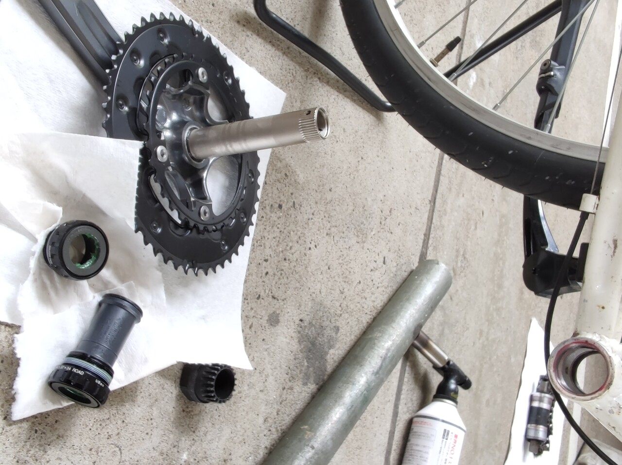 クランクのベアリング (通称BB ボトムブラケット) が抜けました。