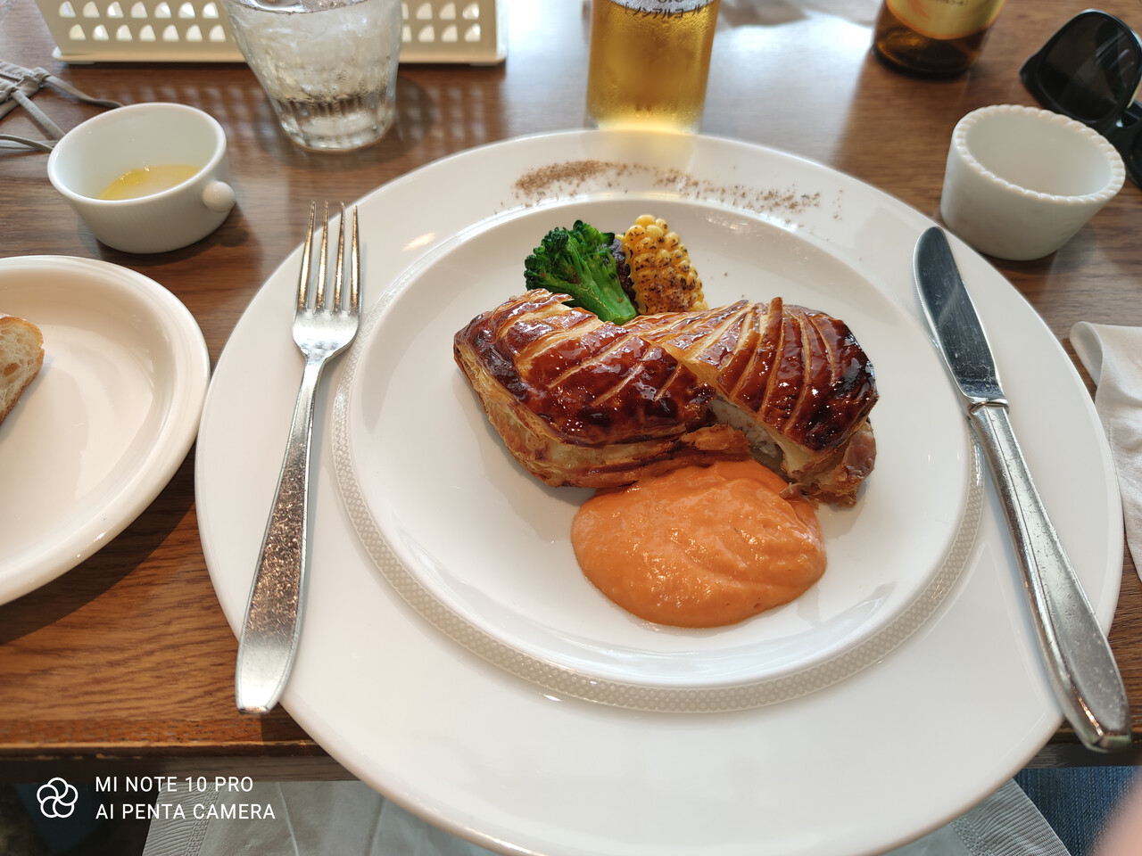 メインは何と!ヌーベルキュイジーヌの旗手:ポール・ボキューズの代表料理 スズキのパイ包み焼きでわないか!!(ノ゚ο゚)ノ 知ってはいたが食べるのは初めて!