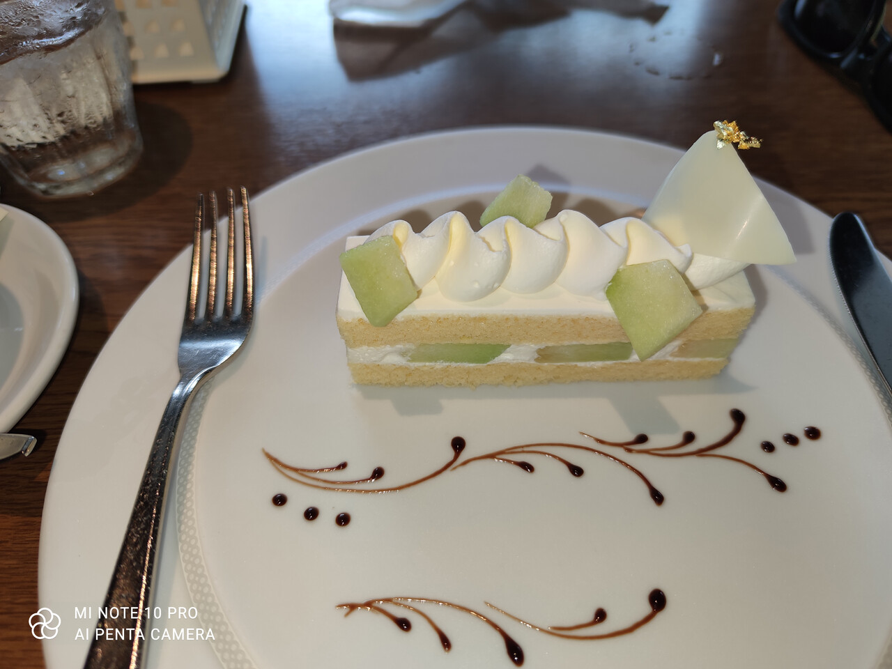 デザートはメロンのケーキ♪ 美味しゅう御座いました ♪