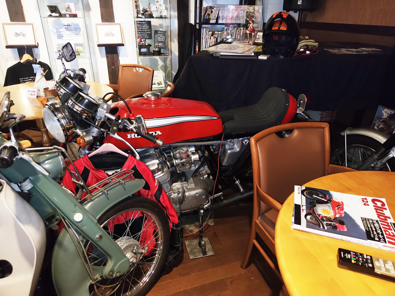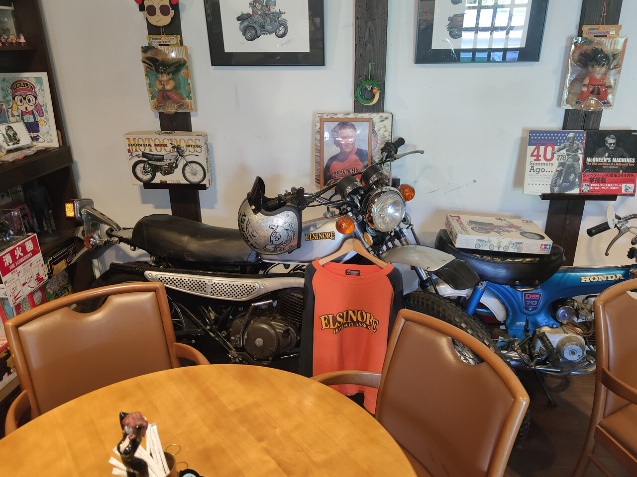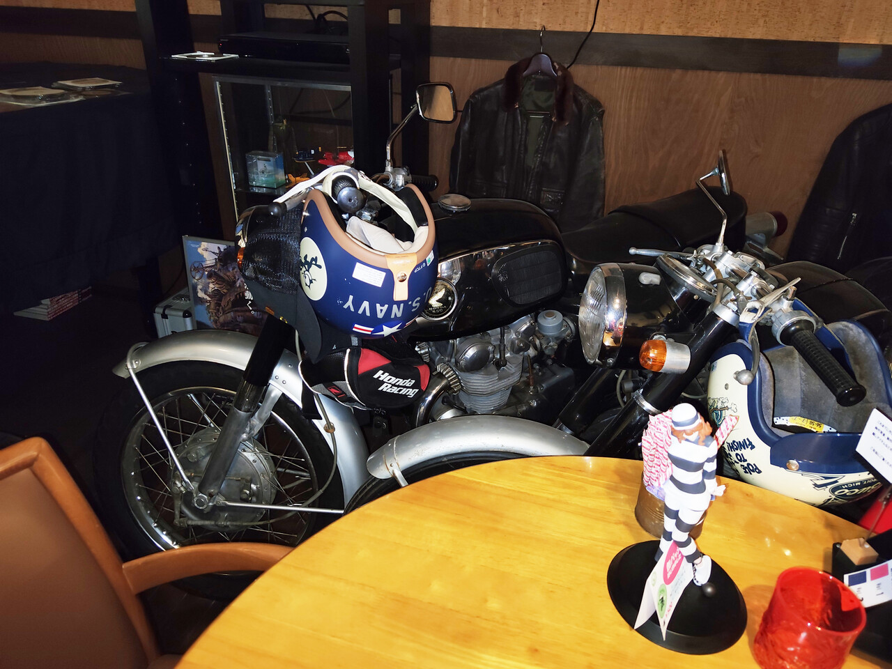 店内は所狭しとバイク置き場なのかカフェなのか分からない状態です!(;^_^A
