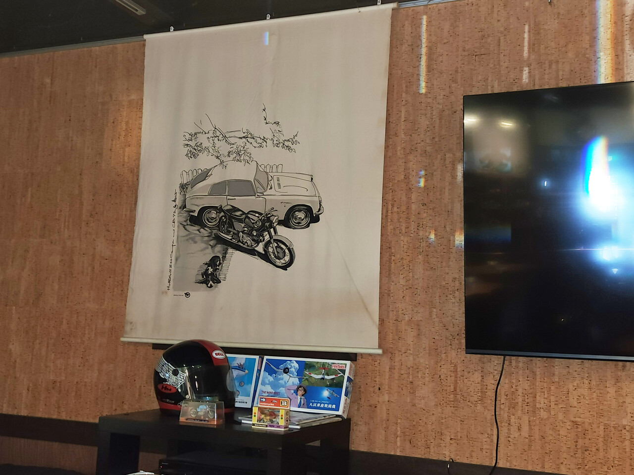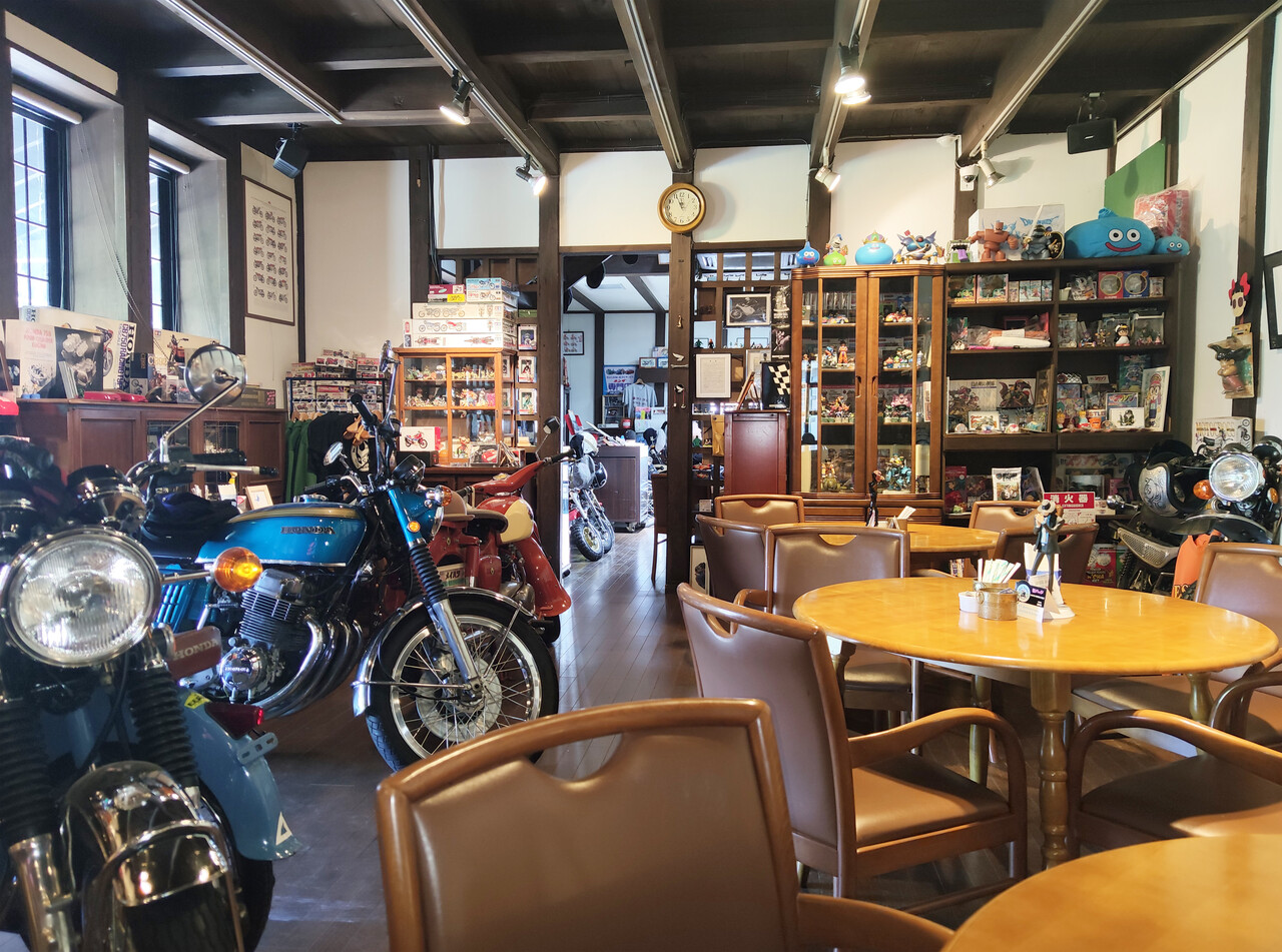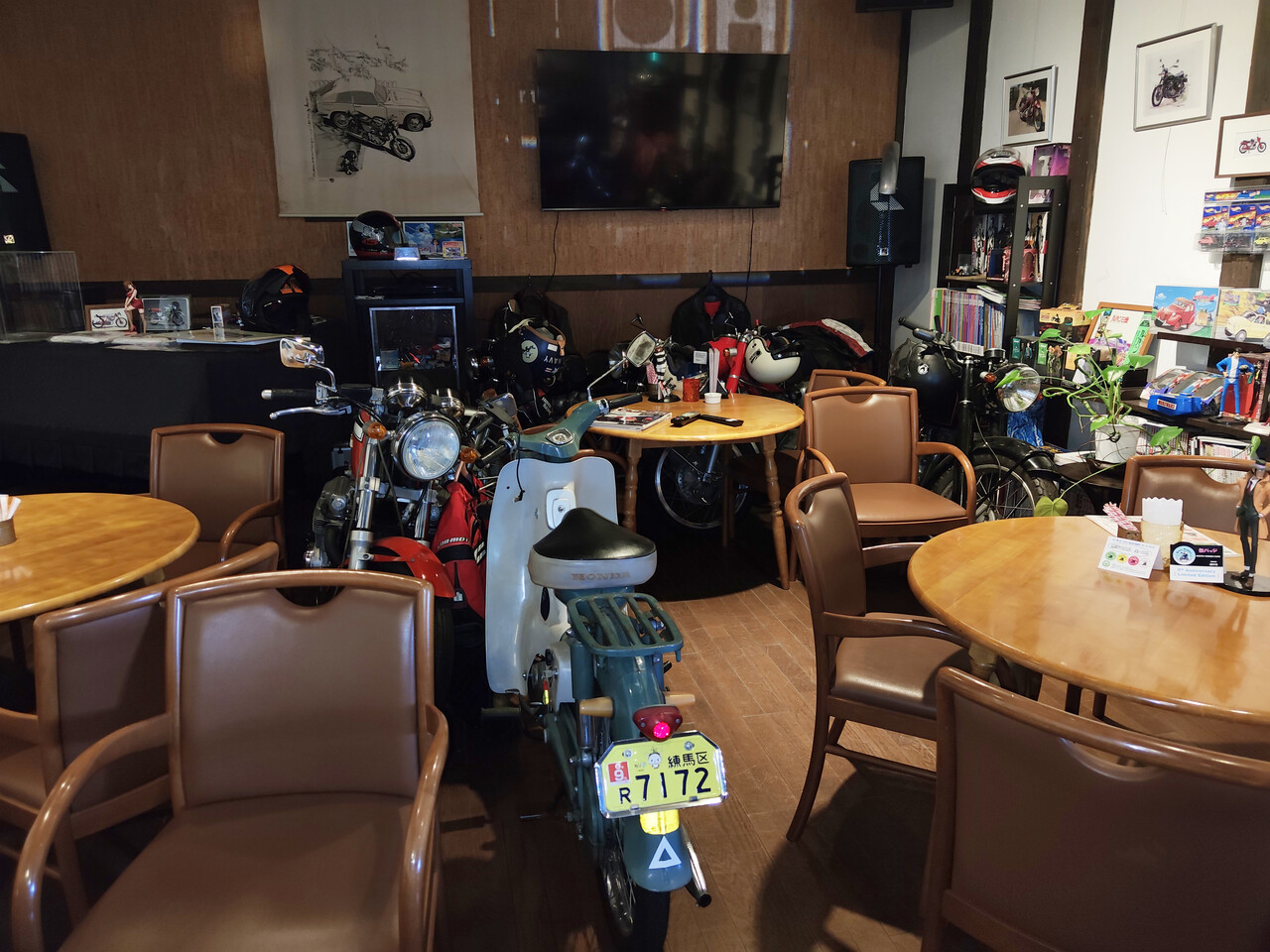 店内は所狭しとバイク置き場なのかカフェなのか分からない状態です!(;^_^A