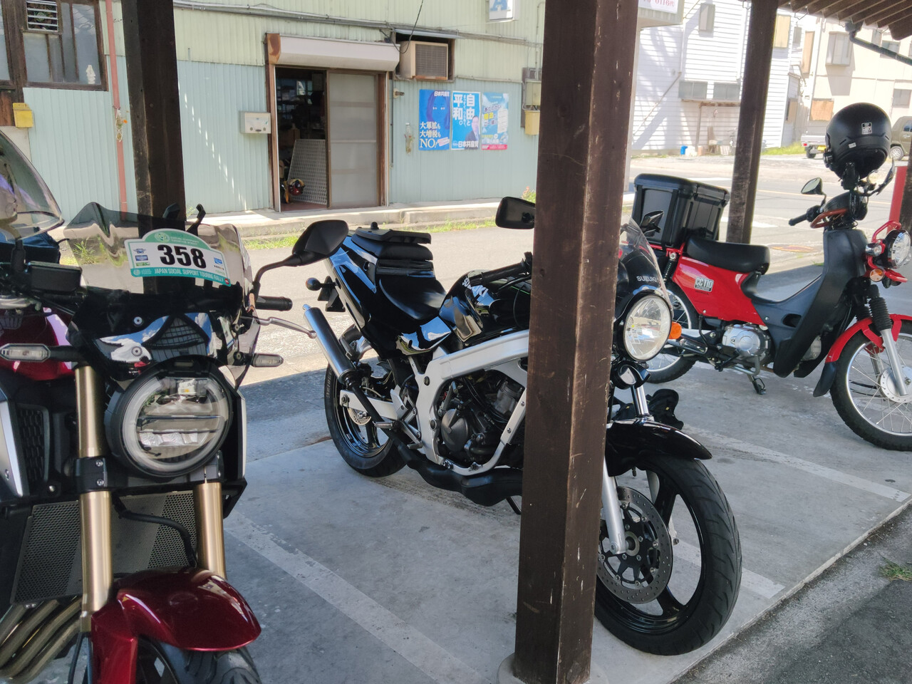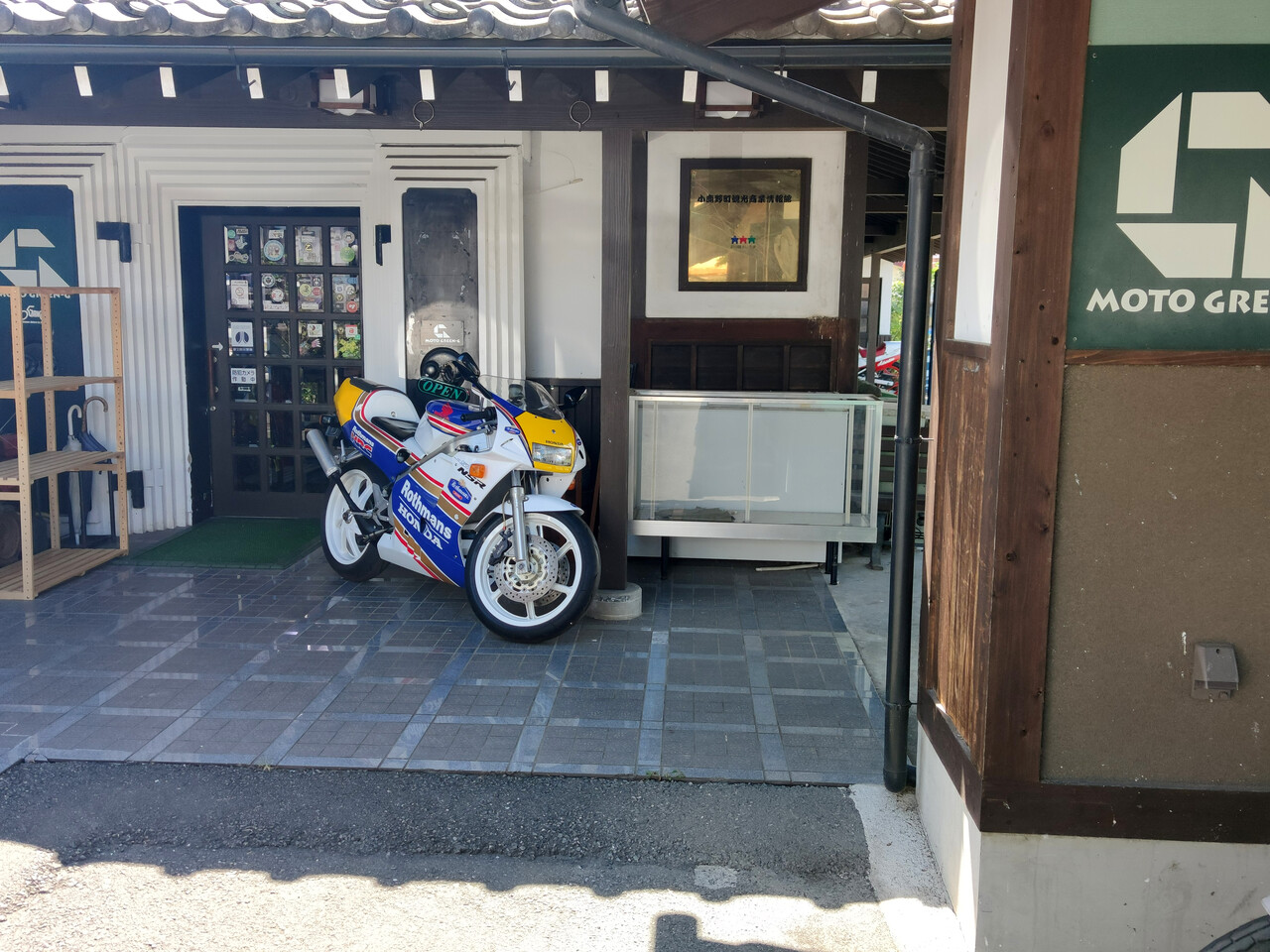 お客さんのバイクなのかスタッフさんのなのかいろんなのが停まってます♪(^^)/