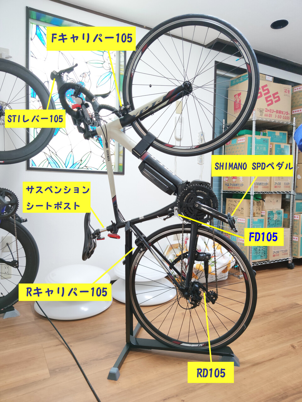 いろいろカスタムしました。元々のコンポはSHIMANO 105でここは変更なしです。
