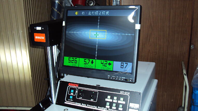 テスター屋で(ハイビームの光軸調整。予め車検合格に予備検査) 予備検査します。
