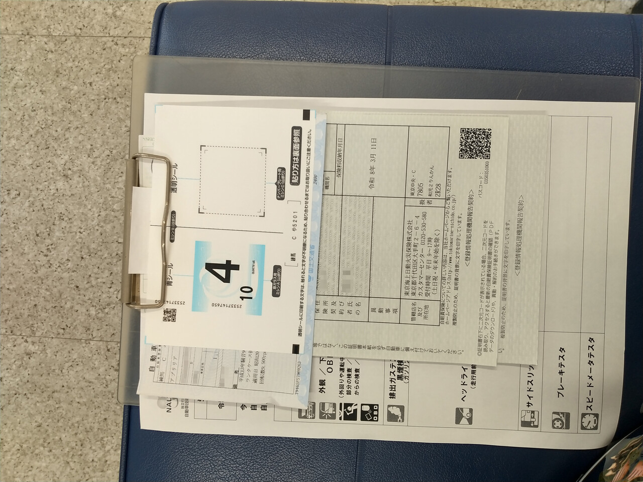 書類に記入して9:00 検査ラインに入ります。費用:テスター代 2,500円、重量税 4,600円 (製造から10年超えると高くなる💧)、