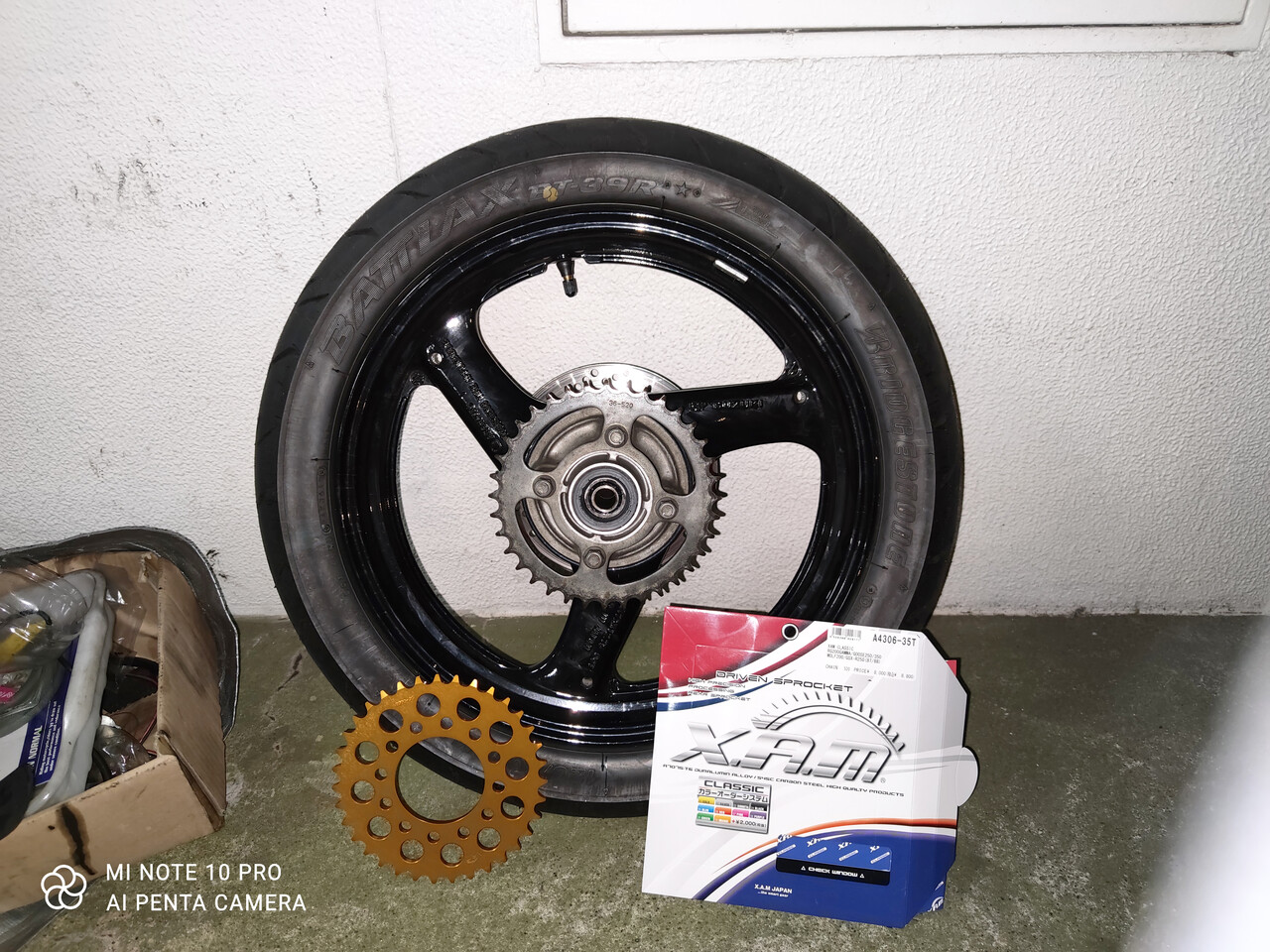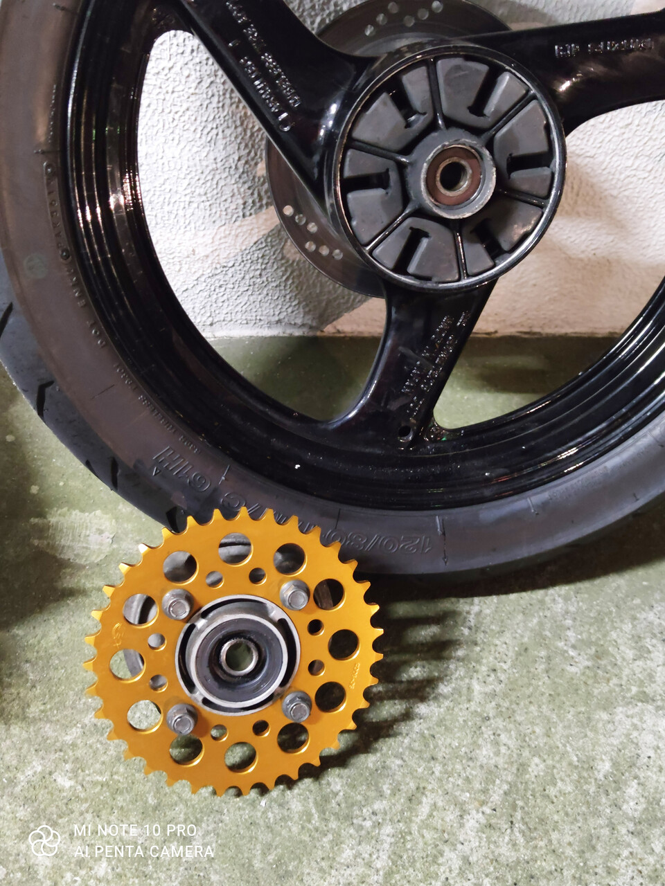 ドリブンスプロケットをXAM のブロンズ色に交換です。