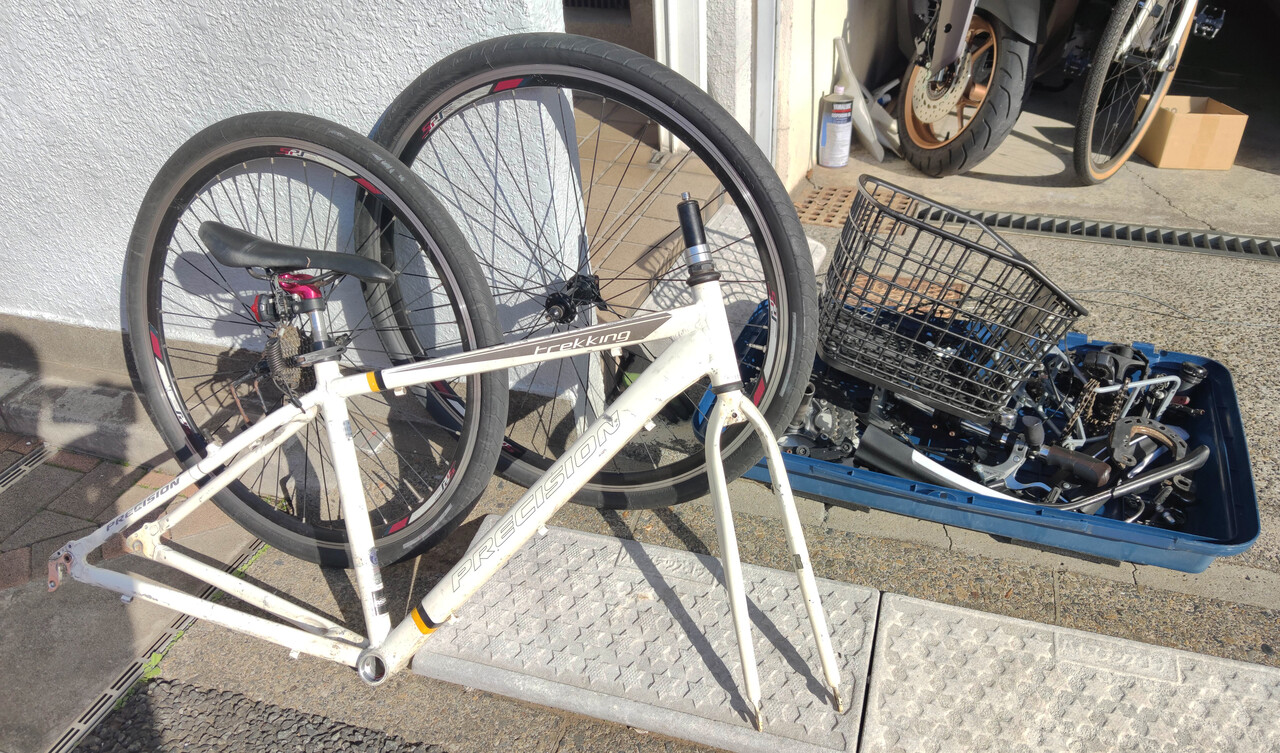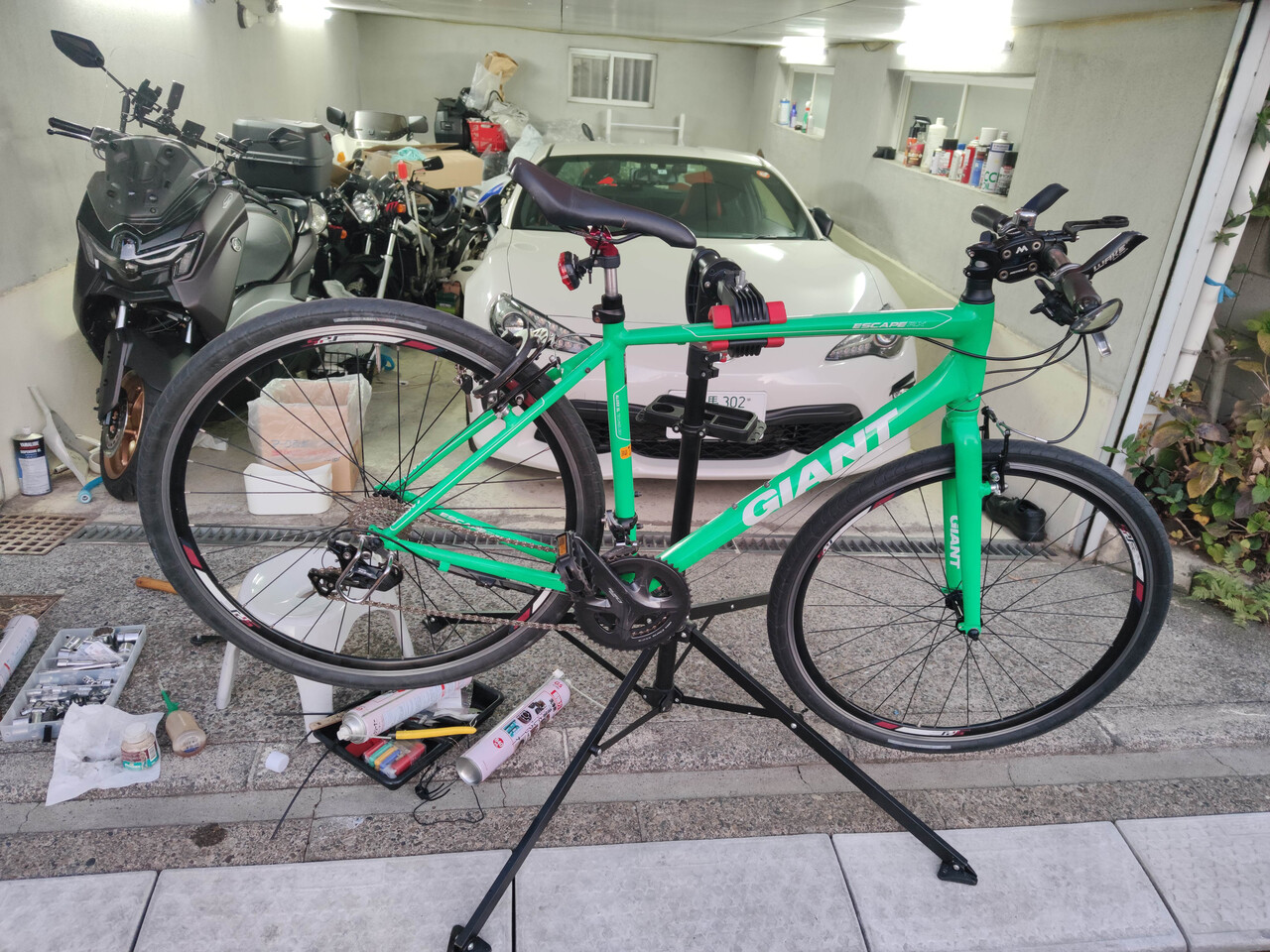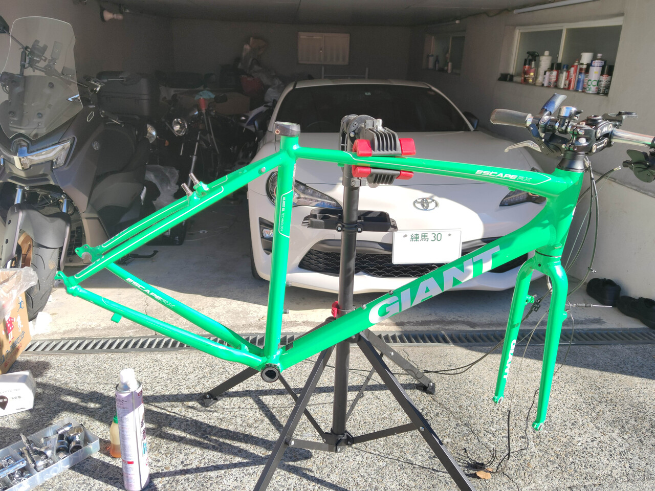 一昨日 昨日の続きで、GIANT Escape RX のフレームにプレシジョンで使っていたパーツを移植しました。