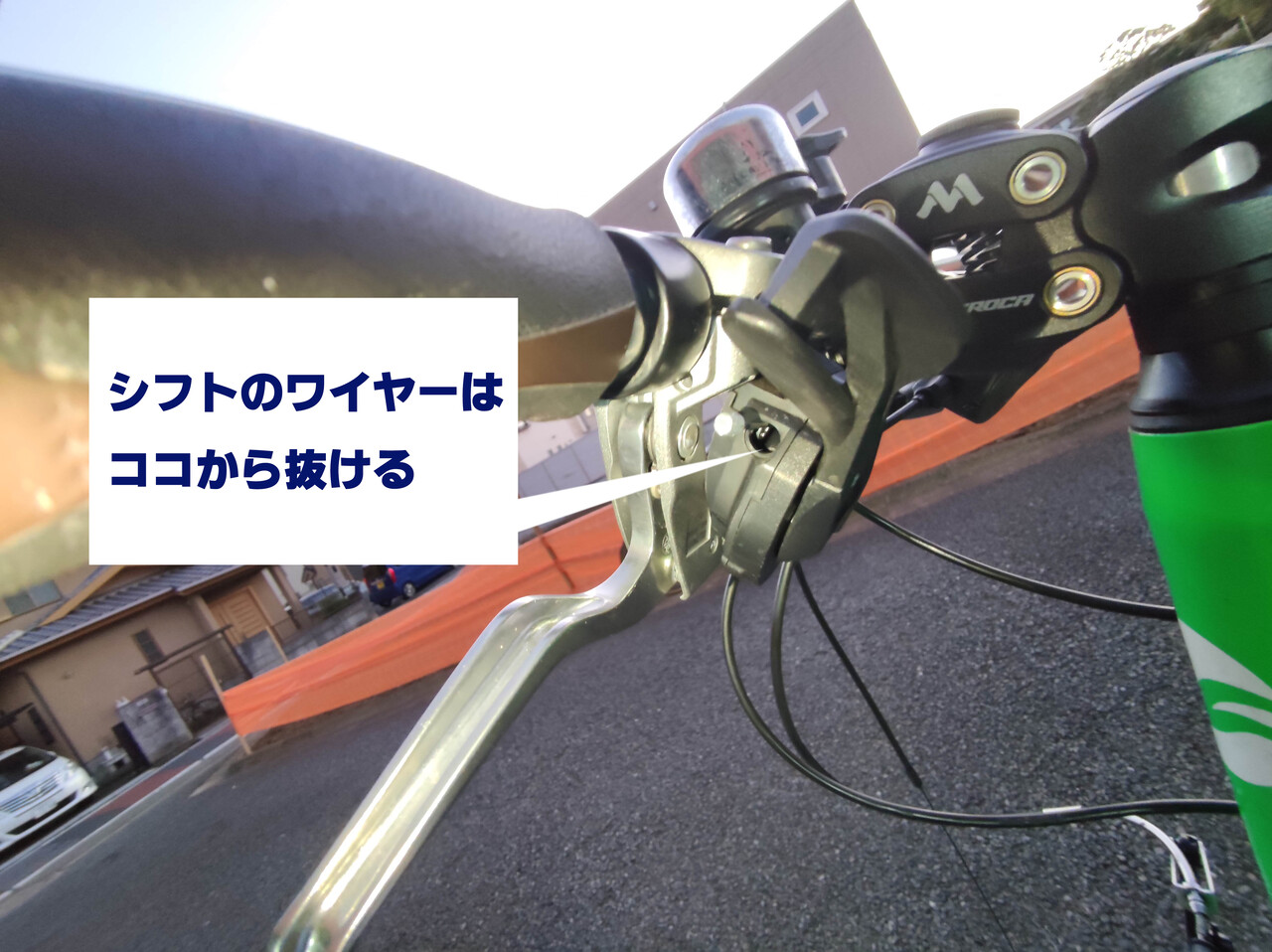ココのブラインドプラグを抜くとシフトワイヤは外せます。