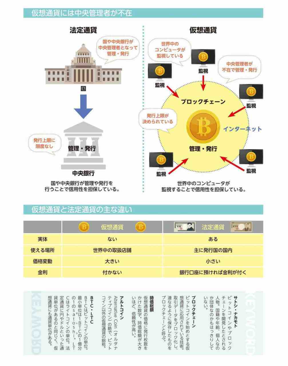 しかし、仮想通貨には基本的に国や中央銀行のような中央管理者が存在せず、決められたシステムに基づいて発行、管理されます。