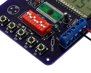 電源は別途ご用意ください、時計と周波数カンターの切り替えはDIPスピッチで行う、