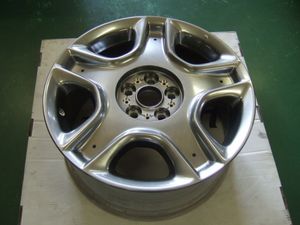 レクサス SC430今回は、レクサス SC430 純正18インチホイールのリペアと 再ハイパーブラック塗装仕上げです。 このホイールは、スポークの隙間を埋めるような 感じで、樹脂製のキャップがはまり込むデザインです。 最近のトヨタ系は、純正ホイールに樹脂製のメッキパーツが はめ込まれるタイプのデザインがよく見受けられます。 ワールドホイールサービス