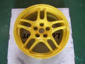 の、純正アルミホイールをパンチの効いたイエローに