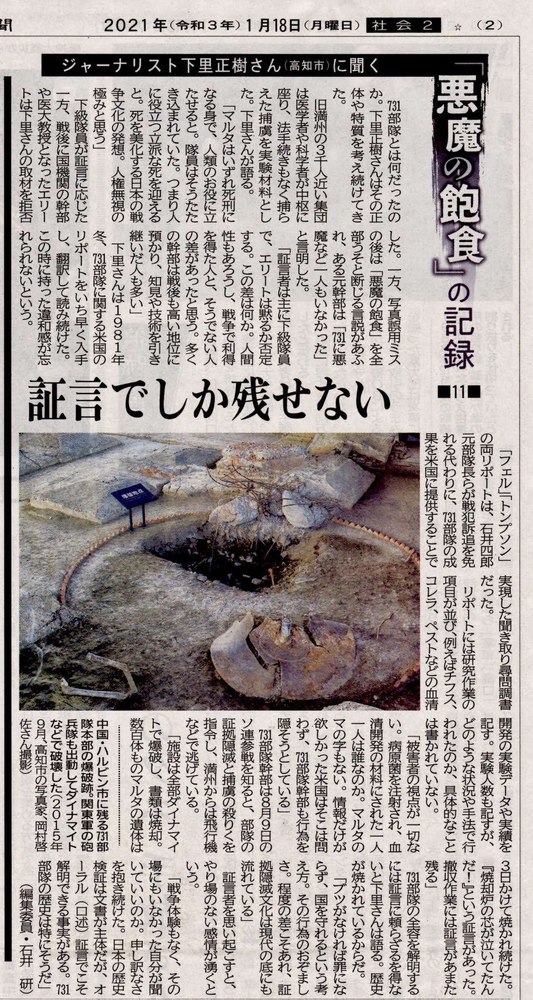 ■この証言は埼玉(浦和)731部隊展(1994年10月)の『報告集』に本人が加筆したもの。